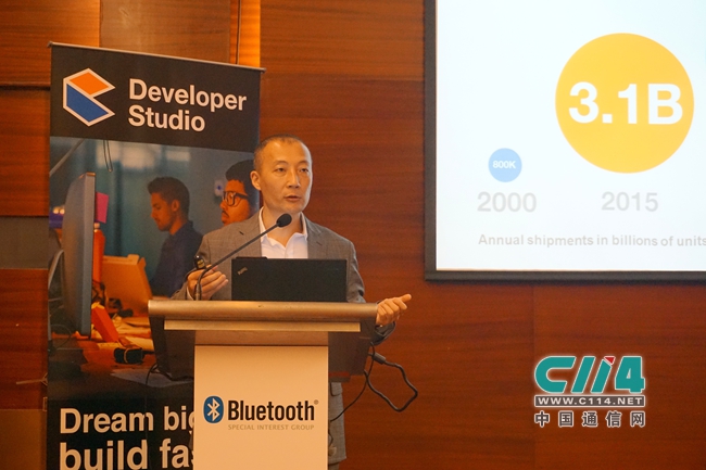 6月2日消息(艾斯)蓝牙技术联盟今日在上海举行媒体见面会,详细介绍了蓝牙技术的最新发展和最新开发包工具Bluetooth Developer Studio的情况。 来自市场研究公司IHS的数据显示,预计蓝牙设备在今年的出货量将达到31亿部,而到了2019年,全球的蓝牙设备出货量将继续增至44亿部。蓝牙技术联盟预计,到2018年超过96%的手机将搭载Bluetooth Smart技术。蓝牙无线技术作为一项全球通用的无线标准,同时也是互联世界的主要技术之一。 今年初,蓝牙技术联盟宣布蓝牙4.2版本正式发布。蓝牙4.2的最大改进是支持IPv6/6LoWPAN,也就是基于IPv6协议的低功耗无线个人局域网技术。这一技术允许多个蓝牙设备通过一个终端接入互联网或局域网。另一优势表现在隐私方面,现在蓝牙设备只会连接受信任的终端,在与陌生终端连接之前会请求用户许可,这一改进可以避免用户无意间暴露自己的位置或留下自己的记录。在传输性能方面,蓝牙4.2也大幅提高了数据吞吐量速度和封包容量(数据传输速度提高了2.5倍)。 图:蓝牙技术联盟开发项目技术经理高文森 作为今天的重头戏,蓝牙技术联盟开发项目技术经理高文森(Vincent Gao)向我们详细介绍了最新的蓝牙应用开发工具包Bluetooth Developer Studio(Beta版本)。这一开发包能够革命性地缩减开发者的蓝牙技术学习时间,并显著加速产品开发。事实上,蓝牙技术联盟这一工具包的概念,源自于物联网市场的快速兴起使消费者们对各种智能互联设备的需求越来越多,通过Bluetooth Developer Studio,开发者们可以快速地设计出这些智能互联设备的原型,并快速推向市场。